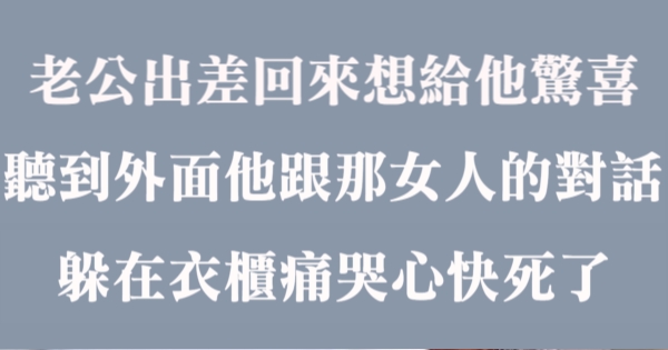 老公出差回來想給他驚喜,聽到外面傳來他跟那女人的對話,我躲在衣櫃摀嘴痛哭心快死了!