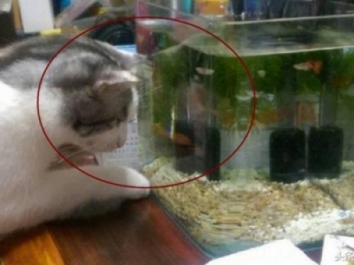 貓咪看了一會兒魚,還一臉愁容,估計在想,這魚兒怎麼關在裡面啊,不行放在我肚子裡吧。後來,貓咪天天都這樣守在魚缸的旁邊,這讓主人哭笑不得啊,想想裡面那些小金魚也真夠可憐的,每天被這樣貓視眈眈,會不會被嚇死了。