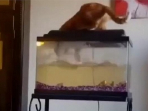 哇~免費的大餐耶 !貓咪爬上魚缸想要偷吃魚,但下場卻讓網友們笑死!這就叫做偷魚不著成落湯貓XDDD