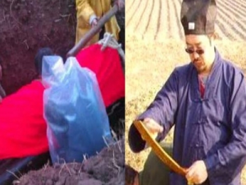 一行人來到墓地,風水先生圍著王根家祖墳轉了一圈又一圈,之後微微皺眉,讓身旁的幾個壯漢將其挖開。