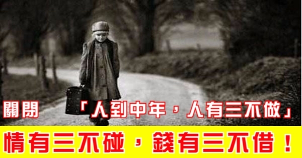 「人到中年,人有三不做」,情有三不碰,錢有三不借!