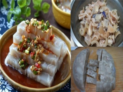 1.肉皮洗淨,刮掉殘留的毛,或者在火上燎乾淨;