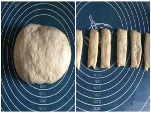 1、把麵粉、雞蛋、糖、鹽、水混合攪成面絮,酵母碾碎,然後倒入面絮中,用手把面絮揉成一坨麵糰,放在面板上發酵40分鐘左右。