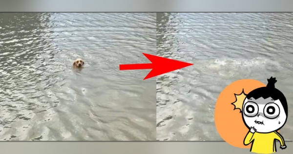 狗狗在河裡開心的游泳,卻突然沉底!!路人見狀緊張的要衝下去救牠,主人在旁卻眼神死的表示:放心,牠真的沒事!