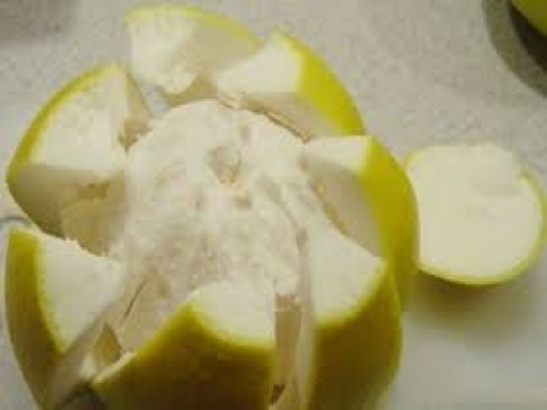 先削去柚子皮的青黃表皮,留下白色的「棉絮」內層。用開水煮柚子皮10分鐘後撈起,用清水泡浸一段時間,擠幹水分,再用清水浸泡,直到把柚子皮中的青澀味去掉後,切成塊狀食用。具有暖胃、化痰、潤喉等食療作用。