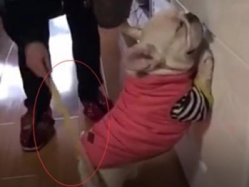 今天的故事是發生在網友姥姥跟她養的法鬥之間的。據網友描述,自己下班回家,發現小法鬥趴在牆面那面壁思過,而姥姥手中拿著尺子,要打小法鬥。