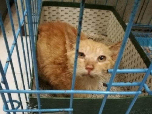 今天的故事也是關於一隻流浪貓,網友在路邊發現了它,是一隻非常可憐的小橘貓。