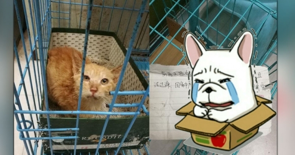網友一開始很氣憤,心想哪個不負責任的把貓丟在路邊,太沒有人性了。後來在貓咪旁邊看到了一張字條,看了字條的內容後,他覺得非常的心酸。