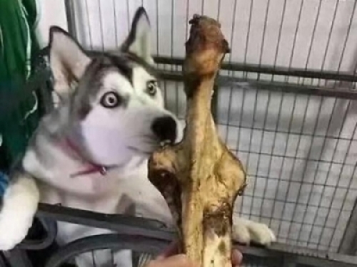 鏟屎官拿來了一根大骨頭,在二哈面前顯擺。二哈一看到這根大骨頭,立馬就不叫喚了,眼睛直勾勾地盯著骨頭,眼珠子都快要瞪出來了。二哈:給我的嗎?鏟屎的你良心發現了?