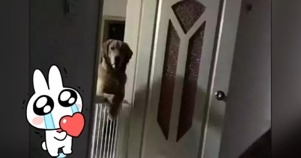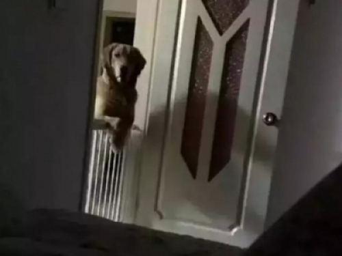 這天晚上,女主人有點失眠半夜醒了過來。不料就看到金毛“黃黃”在房門口直勾勾的盯著自己看,主人想著或許“黃黃”是餓了,就給牠準備了點吃的,就繼續睡覺了。沒想到接下來的幾天裡,女主人每晚半夜醒過來都看到“黃黃”直勾勾的把自己盯著。
