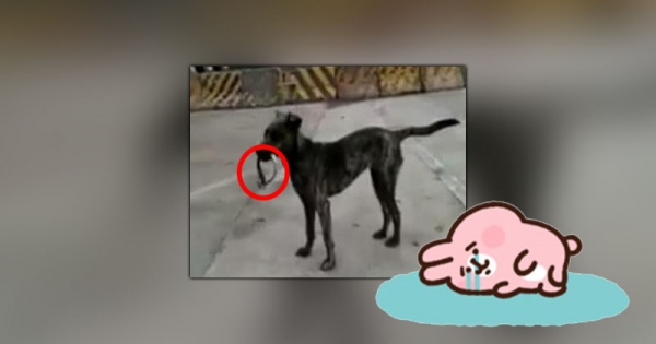 根據今日頭條的報導,在一座大橋下的河堤旁,有一隻黑色的流浪狗,牠在河邊撿到了一個項圈,於是就叼到了岸上,不斷地將項圈往自己的脖子上戴。這應該是一隻走失或者被遺棄的狗狗,牠的主人曾經也親自給牠戴上了項圈,所以牠認為自己有主人,想將項圈戴上。“主人說,街道上的流浪狗是會被抓起來的,我只要戴上項圈,他們就不會來抓我了,我就可以在這裡等主人了”。