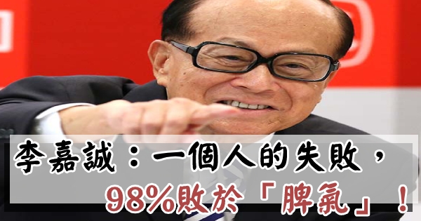 他公開成功訣竅! 李嘉誠:一個人的失敗,98%敗於「脾氣」!(值得深思)