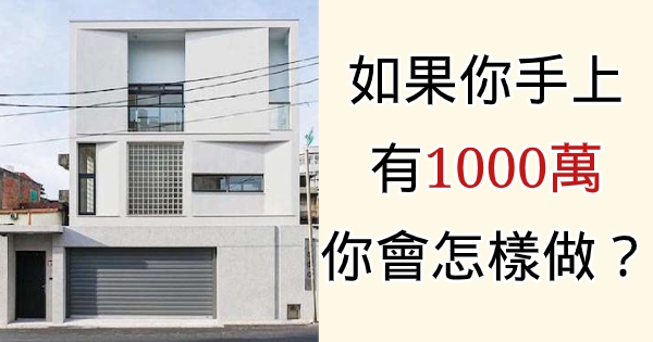 一位網友上網詢問,如果拿300萬到中南部買房,再用剩下的700萬投資,是不是就可以生活無憂,但這番想法反遭大家嘲諷說:「300萬隻能買鬼屋!」