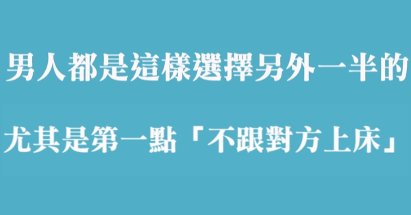 女人必看!大多數男人都是這樣選擇另外一半的,尤其是第一點「不跟對方上床」!