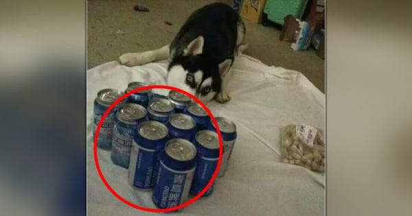 這天鏟屎官估計是閒的蛋疼了一個人準備了好多啤酒,這時候二哈好奇的在周圍轉喲著,鏟屎官突然心生一計把二哈灌醉會如何!
