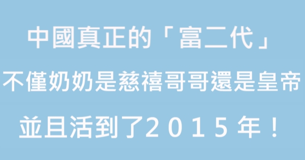 中國真正的「富二代」,不僅奶奶是慈禧哥哥還是皇帝,並且活到了2015年!