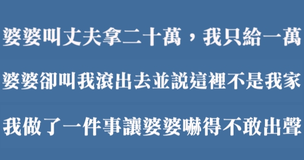 婆婆叫丈夫拿二十萬,我只給一萬,婆婆卻叫我滾出去這裡不是我家,我做了一件事讓婆婆嚇得不敢出聲!