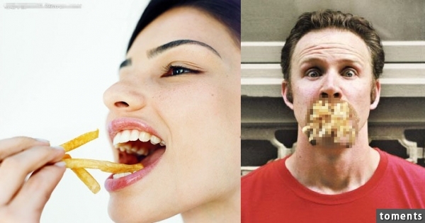 薯條人人愛,常常是讓大人小孩都一口接著一口吃。不過這回可是有些尷尬,因為這根也太長啦!