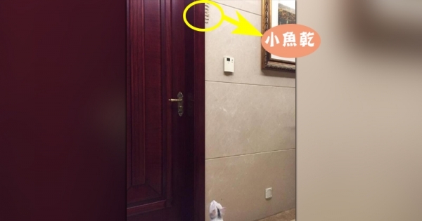 為了達到這一目的,鏟屎官買來了一包貓咪最愛吃的小魚乾,把幾個小魚乾插在了臥室門框的縫隙裡,而且高度達到了主人身高的三分之二,這對於貓咪來說,已經快要比三個它都高了。