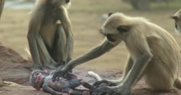 而站在一旁群體中的成年猴子,也擁抱牠們的後代,種種行為就跟人類哀悼、互相安慰的方式非常類似...