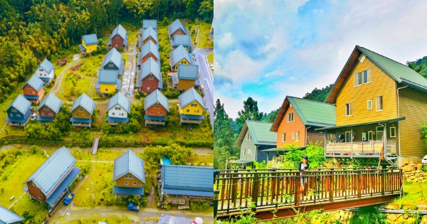 社區裡一幢幢的小木屋都是採斜頂式設計,且色彩繽紛療癒,每一戶都充滿著驚喜及不同的故事,來到這邊彷彿置身於山林中的世外桃源,遠看的話激似日本合掌村呢!
