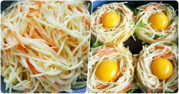 馬鈴薯和胡蘿蔔配合雞蛋,豐富了早餐人體所需的營養物質。
