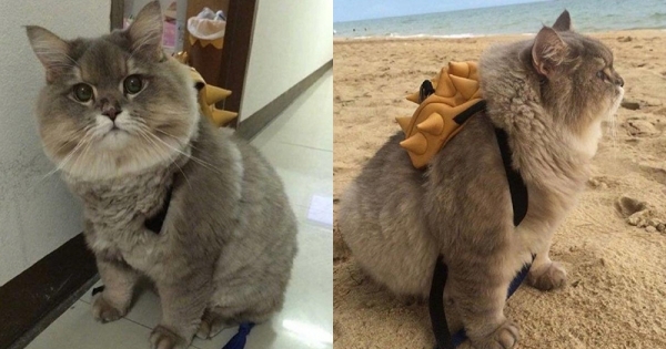 史上最萌!主人家裡養了一隻十分壯實的貓咪,每天最喜歡背黃色刺刺小包包出門,萌化了所有人!