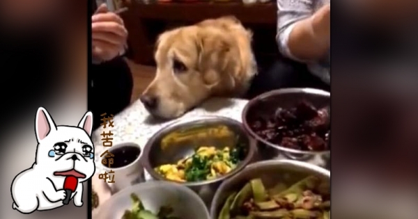 主人夾菜時,金毛的眼神就跟著筷子走!滿心期待著這一筷子是主人夾給自己的,然而...