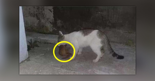 有一天晚上主人睡得迷迷糊糊, 突然間聽到自家的貓一直在叫, 而且聲音和平時不一樣, 低沉地嘶吼著。主人很好奇,就打開燈推門出去, 看到貓咪叼著大傢伙!