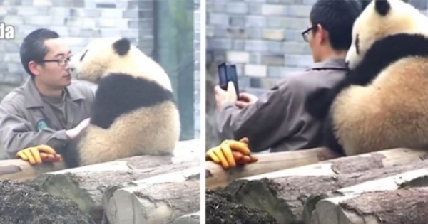 根據gigcasa的報導,大熊貓光靠黑白萌萌的外表,就輕易擄獲了不少人的心,可以跟他們每天近距離接觸的飼育員,更是大家心目中的夢幻職業啊!每次只要看到熊貓跟飼育員可愛的互動,真的讓人超羨慕的啊~~根據IPanda在Youtube所發布的影片,在中國都江堰大熊貓保護研究中心的這隻「青青」(又名蔓越煤),是隻非常愛撒嬌的熊貓寶寶,雖然體型是比成年熊貓小了一點,但牠仍覺得自己還沒長大,每天都要纏著飼育員討抱抱。這天牠拉著飼育員的手,嘴巴不停湊過去要跟他親親,這麼親近的模樣就讓不少人都羨慕;後來飼育員拿出手機想要跟青青自拍,而熊貓寶寶竟然...做出的舉動真的讓人全都融化了!