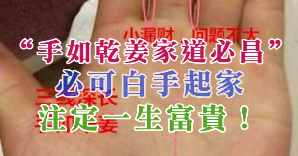 “手如乾姜家道必昌”,必可白手起家,注定一生富貴!