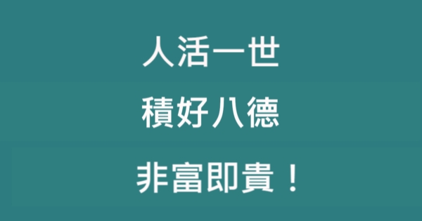 看完後是不是覺得Sophia小編在有錢人這麼想分享的勵志故事文章很好呢?想看更多好文,或是喜歡有錢人這麼想的文章的話,可以按讚追蹤正義的聲音 - 只分享正面能量並分享這篇「人活一世,積好八德,非富即貴!」出去給大家一起看看喔!