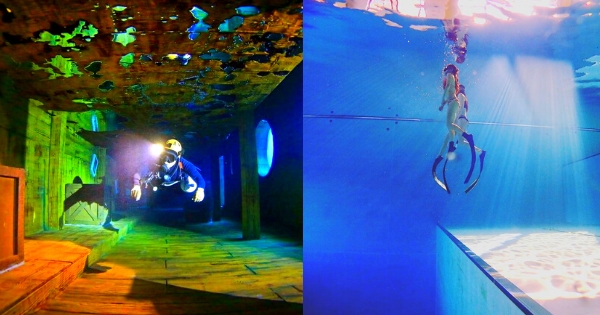 沒錯,潛立方旅館能潛水,亞洲第一全球第三座深潛池,專業設計安全、便捷,讓來到都市的你也能輕鬆享受潛水活動,一感深水中的舒壓與寧靜。下次來到中部旅遊的朋友記得一定要來台中「深度之旅」,探訪全球首創設計的室內沈船探險!