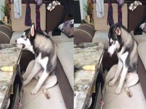 哈士奇咬壞幾個茶幾,主人氣得換上石頭桌,二哈一咬就崩潰了