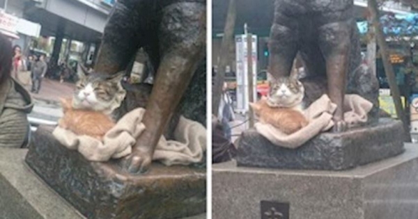 貓咪母子睡在八公雕像下看起來好可愛,但背後的真相卻殘忍的可怕!