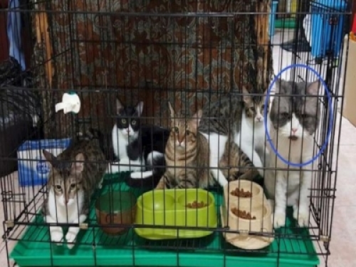 一位主人家裡養了5隻貓咪,也算是一群貓咪了,一天,主人要給家里大掃除,怕貓咪們添亂,主人就把這群貓咪關進了籠子裡,關進籠子後,其中有四隻貓咪瞬間就不高興了,一臉委屈地看著主人,至於還有一隻嘛,這隻大頭貓看架勢應該是這群貓咪中的大哥,它卻是立馬就毛了。