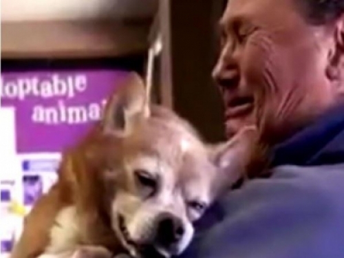 這隻狗狗一定是幸福的,因為它生命的最後一刻是在主人的肩膀上面度過的,主人看到狗狗慢慢的閉上眼睛,終於忍不住了,淚水還是流了下來