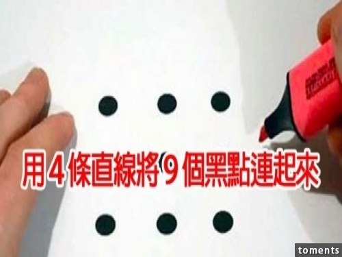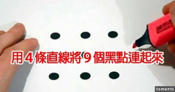 這個看來超簡單的題目,全世界卻只有20%的人可以在3秒鐘內解出來!你可以用4條直線將這9個黑點連起來嗎?