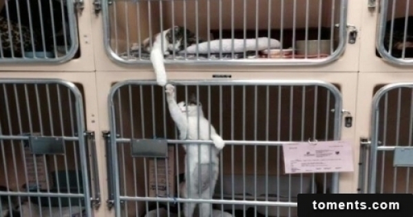 這是在拍動物偶像劇嗎?貓咪「超越鐵籠的生死戀」,手怎麼搆都搆不著對方,真的要淚奔了啊~!