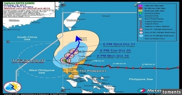 巨爵在昨天上午8時減弱為輕颱,且滯留於呂宋島上空,氣象局預報員林智暉研判,颱風中心有機會再次登陸呂宋島,隨後於今天下半天起逐漸向北移動,進入巴士海峽,但是移動速度不快,加上結構受到地形破壞,強度及暴風半徑都有減弱、縮小的趨勢,因此很難掌握發布海上警報的時間,最快是今天晚上,也可能明天才發警報。