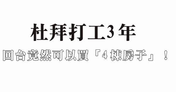 杜拜打工3年,回台竟然可以買「4棟房子」!