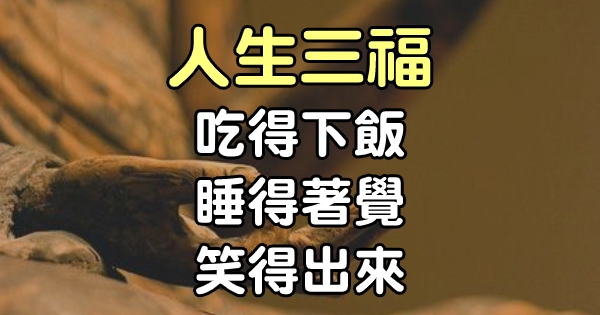 人生三福:吃得下飯,睡得著覺,笑得出來!