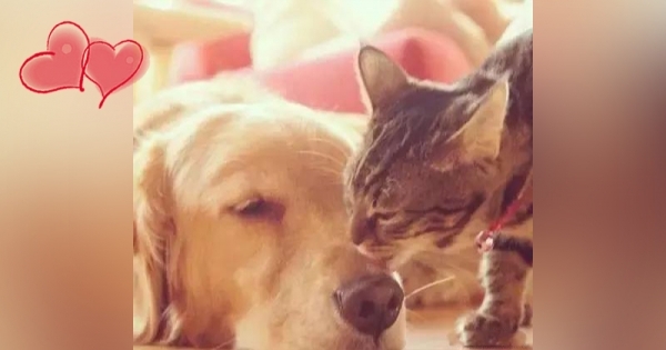 都說狗狗和貓咪是天生的對頭,水火不相容,不是貓咪佔上風就是狗子欺負喵。不過這個對於黃金獵犬來說容易多了,不管你是誰家的貓,我老金是肯定不會欺負你的!