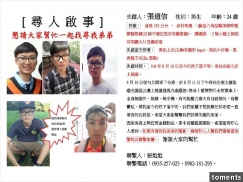 根據媒體報導,張家在台東四處張貼尋人啟事,張父月初在縣長黃健庭的臉書上留言,希望縣府幫忙找「小犬」,縣長的臉書管理人員誤會是張父的愛犬失蹤,把留言轉給動物防疫所和縣警局,沒想到兩單位也都會錯意。