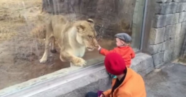 小男孩跟獅子隔著窗戶對看,下一秒小男孩離開後,獅子的反應簡直讓所有都驚呆了!
