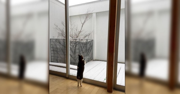 根據woo22網站報導,在日本關東地區近日下雪,一隻貓咪就貼在家中落地窗上,看著白色的雪花花一片一片從天上落下,就像在說“ 好美的雪哦,好想玩哦 ”;主人見狀就打開門讓牠出去玩雪,結果5秒後讓主人看了哈哈大笑。