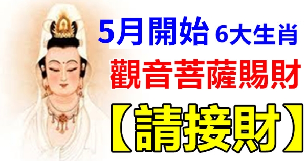 觀音菩薩賜財,5月開始, 6大生肖【請接財】,財運365天~旺順發