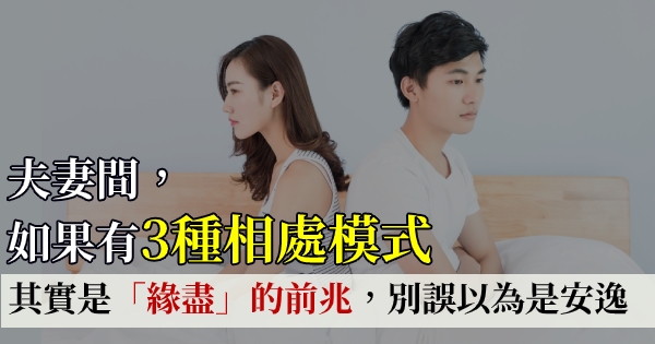 夫妻有三相處模式,其實是「緣盡」的前兆,別誤以為是安逸。
