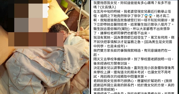 對於犯錯能夠好好原諒、包容的父母,已經是很難得的了,沒想到這位爸爸竟然對於「高中女兒懷孕」,還能如此冷靜思考,真的令人佩服,也看得出他真的非常愛女兒!