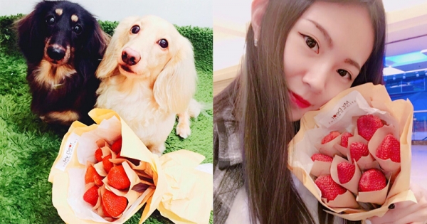 ▲草莓配上腸腸,會不會太萌了啦!乾脆帶著一隻狗狗跟一束草莓花送給女友,跟女友說以後狗狗就是我們的孩子,草莓是我的聘禮!
